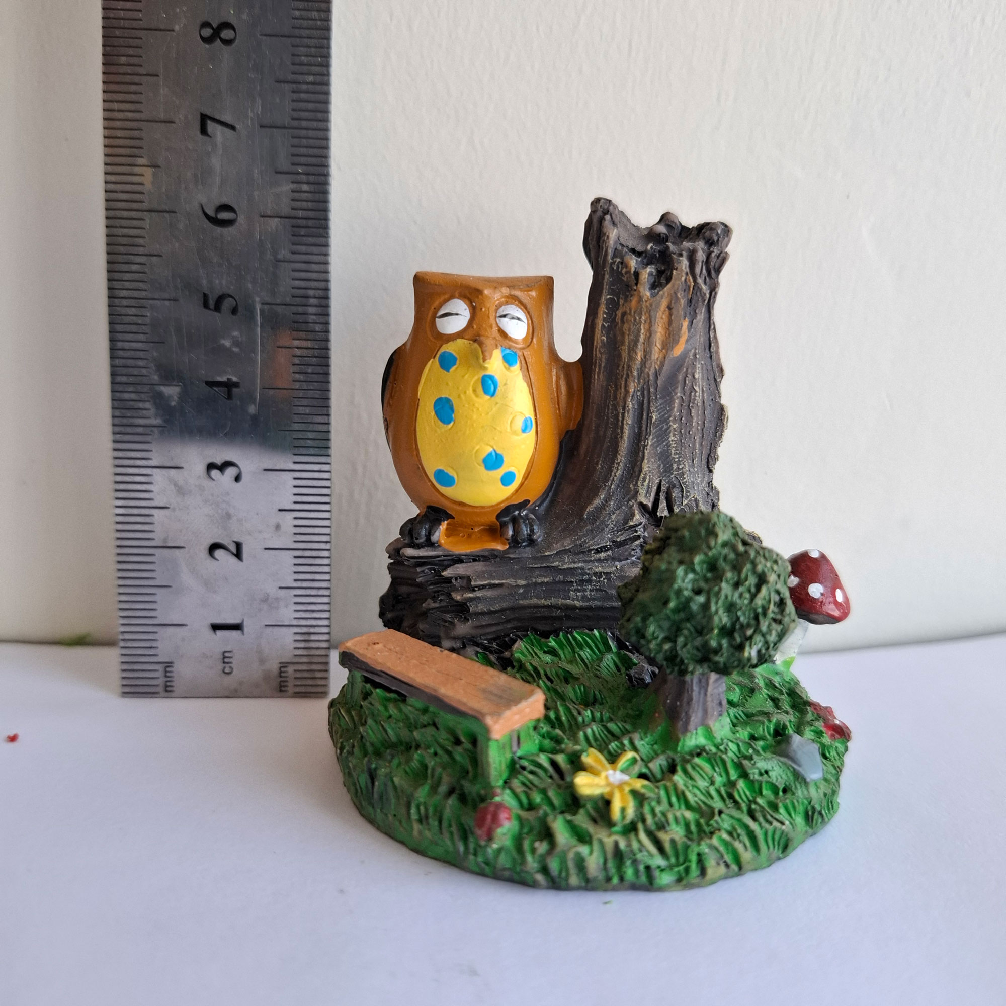 Búho en árbol miniatura para terrario 5,5x5x6,5cm